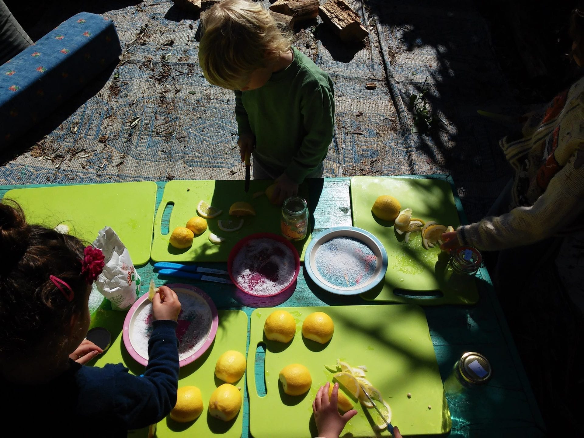 פורסים את הלימונים דק דק. מוציאים את הגרעינים. בצלחת שופכים שכבה של מלח גס. טובלים כל פרוסה קלות במלח ומנערים ולצנצנת. חוזרים על הפעולה עם כל הפרוסות, מדי פעם דוחסים את הפרוסות בצנצנת, עד שהיא מתמלאת ומעט מיץ מהלימונים צף ועולה. מכסים בעוד קצת מיץ לימון סחוט ושכבה של שמן זית עד שפת הצנצנת. סוגרים ומחכים בסבלנות כ-10 ימים.