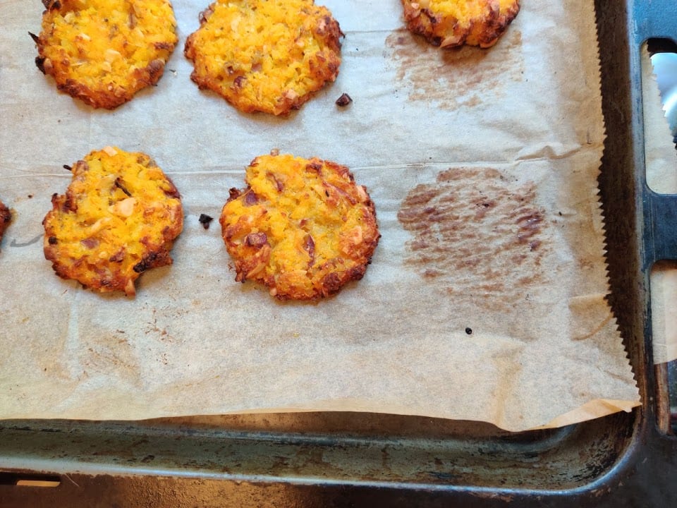 לקראת השנה החדשה הכנו יחד טבלה שבועית של מה אוכלים כל יום. כדי להקל על הילדים ולהקל על אמא, ועל הדרך גם לוודא שהילדים אוכלים מגוון ובריא. אחד העקרונות שלי בבישול יעיל הוא לנצל את מה שלא נאכל אתמול (טוב זה עיקרון סבתאי ידוע, לא ממש אני המצאתי). וכך נוצרו גם הקציצות האלה – קציצות מקיצ'רי שנותר מאתמול עם כל מה שהיה במקרר. קיצ'רי הוא המקבילה ההודית למג'דרה והוא מזין , טעים ומשביע מאין כמותו, אלא שלאחר יום במקרר הוא הופך ליציקה. באותה מידה אפשר להשתמש גם במג'דרה שנשארה מאתמול. פוררתי אותי והוספתי לו גזר מגורר, בצל סגול קצוץ וגפרורי שקדים בשביל הקראנץ', מעט תבלינים ויאללה לקבב. ניסיתי לטגן וניסיתי לאפות והאמת שהאפויות יצאו יותר טוב. יש לחמם את התנור מראש לחום גבוה (200-220 מעלות) לשמן את נייר האפיה ולהזות קצת שמן על הקציצות, ולהניח להן להחרך מעט ולקבל קרום שזוף וקראנצ'י מבחוץ.